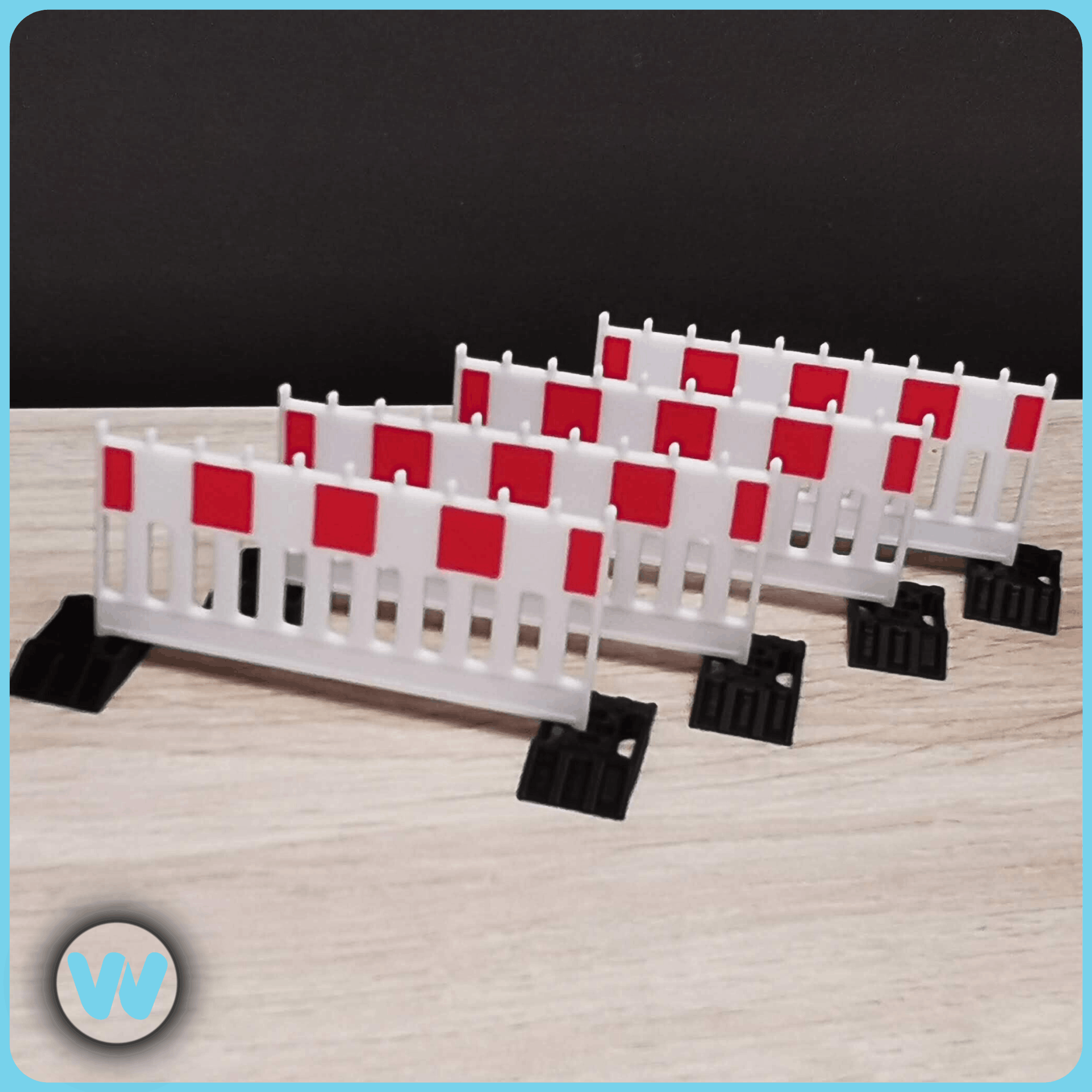 Unsere Absperrschranke ist detailgetreu rekonstruiert anhand von reellen Vorlagen der EURO1 Norm.