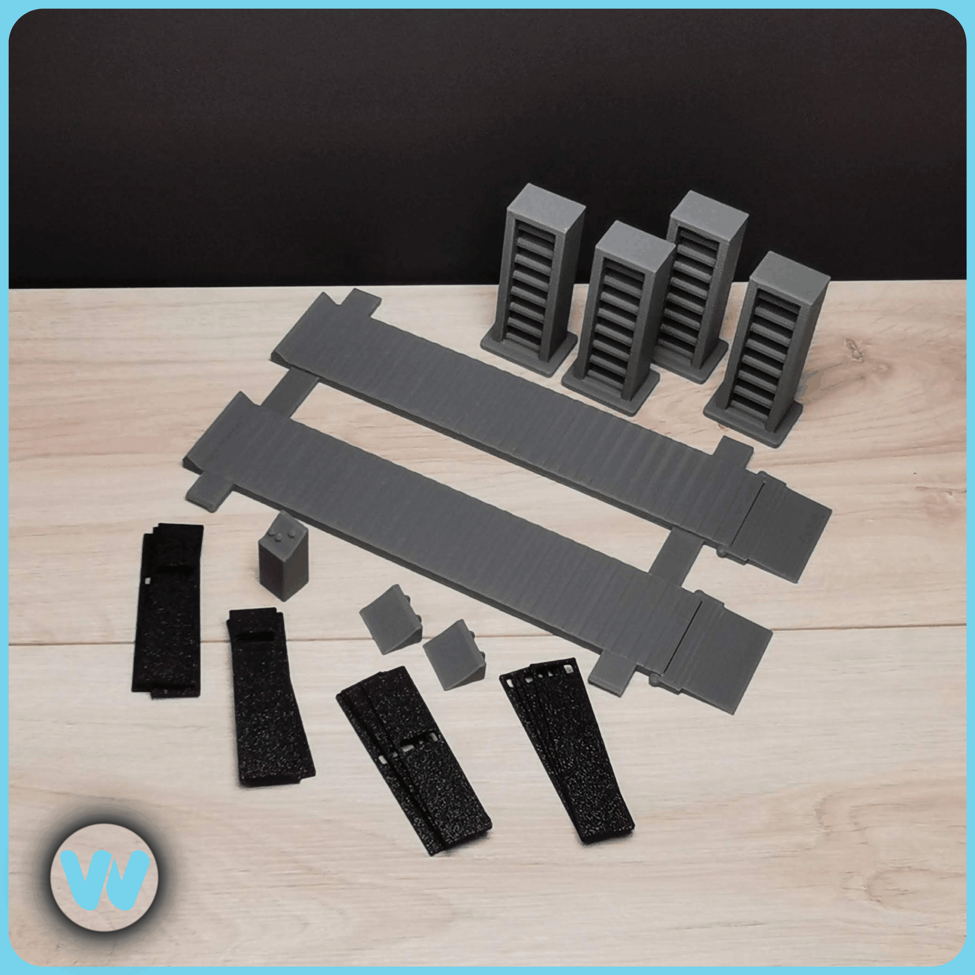 Sie werten jedes Diorama auf und präsentiert Ihr Lieblingsmodell noch einmal ganz besonders. Schwarze Blenden verdecken den "Hebemechanismus" und würde im Original Gummiabdeckungen entsprechen.